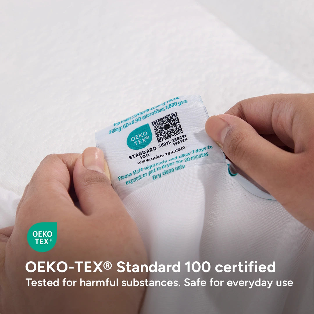 Kapas products are naturally hypoallergenic, odour resistant, and is certified by OEKO-TEX, which means your sheets are free from up to 350 toxic chemicals, giving you and your loved ones peace of mind.